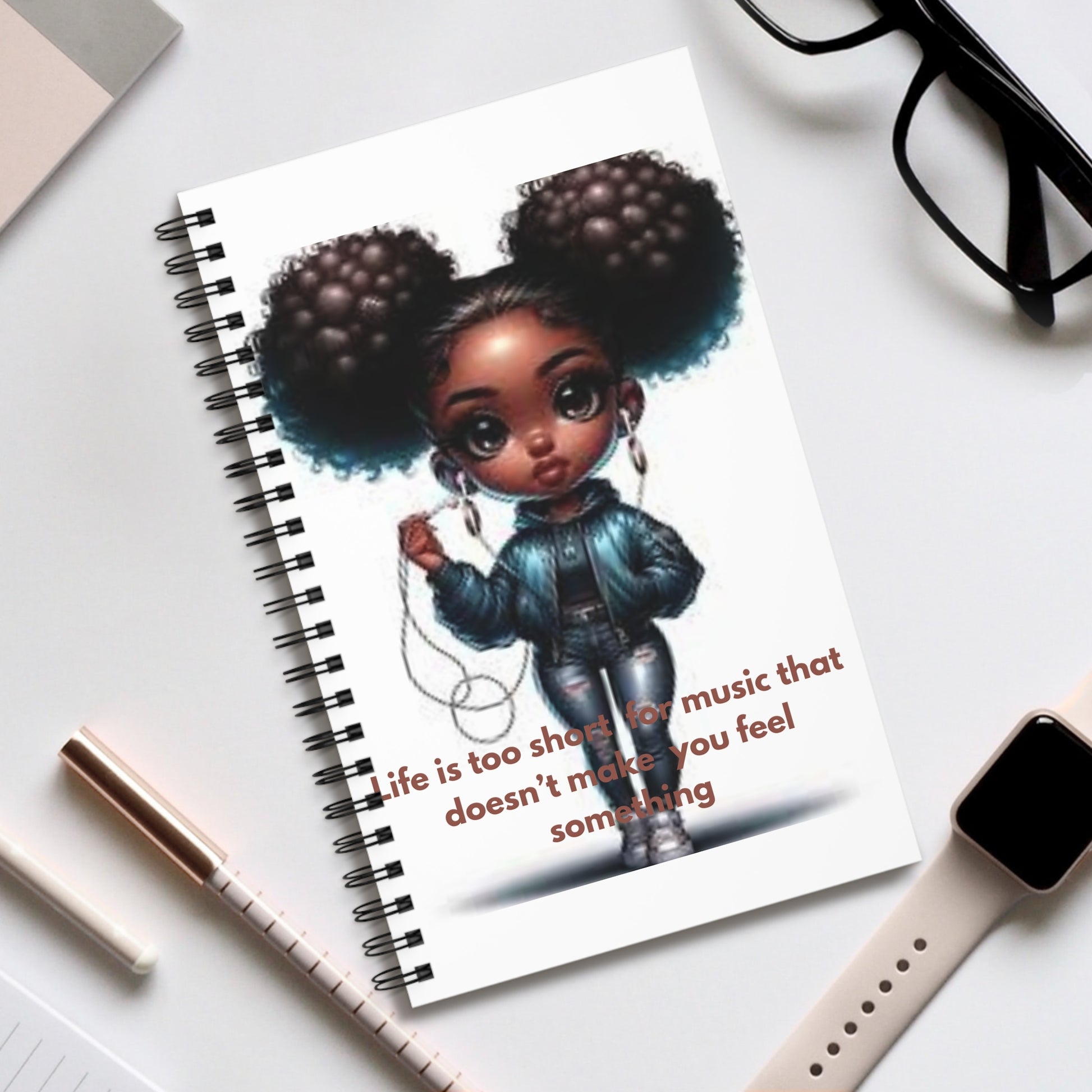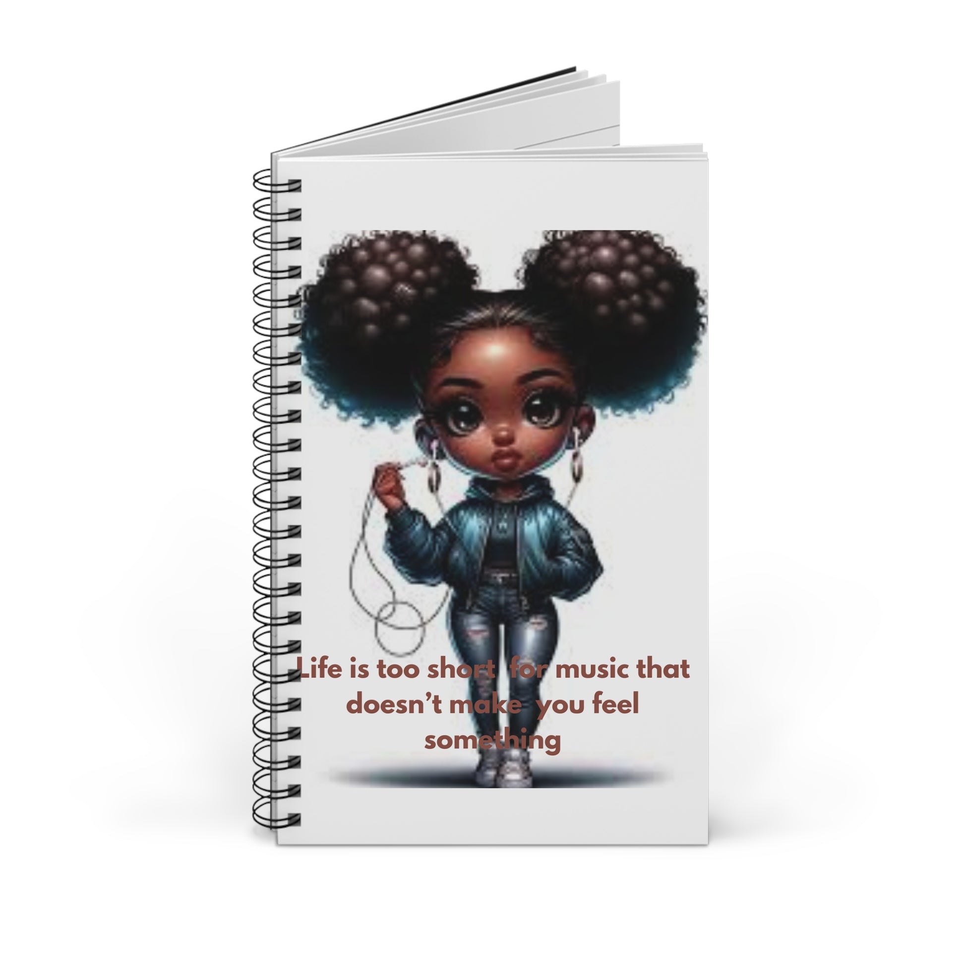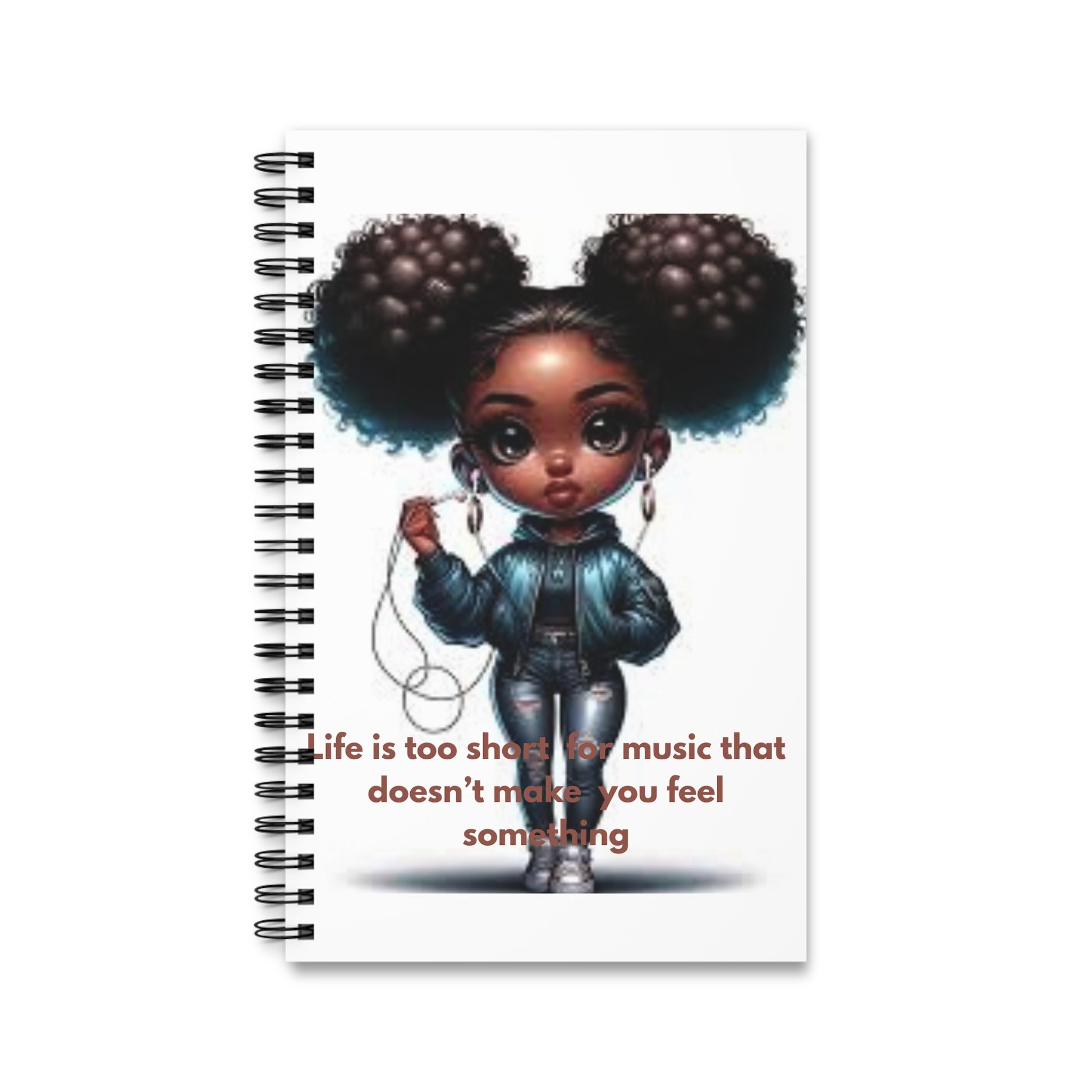 A vibrant spiral journal featuring the quote 'life is too short to listen to music that doesn't make you feel something'. Perfect for music lovers and creative souls looking for inspiration. Ideal for jotting down thoughts, ideas, and lyrics. Relevant for music-themed gifts, back-to-school, birthdays, and holidays.